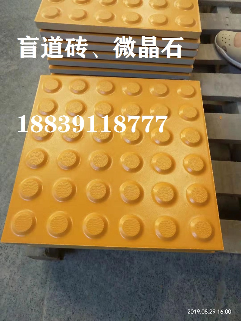 10元一塊,來(lái)電咨詢(xún)18839118777,中冠盲道磚盲道磚是為盲人安全提供的行路方便道路設(shè)施。盲道磚由三類(lèi)磚鋪就,一類(lèi)是條形方向引路磚,引導(dǎo)盲人放心前行,稱(chēng)為行進(jìn)盲道磚,或盲道方向引路磚;一類(lèi)是帶有圓點(diǎn)的提示磚,提示盲人前面有障礙,該轉(zhuǎn)彎了,稱(chēng)為提示盲道磚,或盲道方位引路磚;還有一類(lèi)就是盲道危險(xiǎn)警告引路磚,圓點(diǎn)較大的,就是警視不要超越,前面危險(xiǎn)。