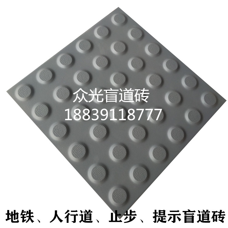 盲道磚是為盲人安全提供的行路方便道路設施。盲道磚由三類磚鋪設,一類是條形方向引路磚,引導盲人放心前行,稱為行進盲道磚,或盲道方向引路磚;一類是帶有圓點的提示磚,提示盲人前面有障礙,該轉彎了,稱為提示盲道磚,或盲道方位引路磚;還有一類是盲道危險警告引路磚,圓點較大的,是警視前面危險。