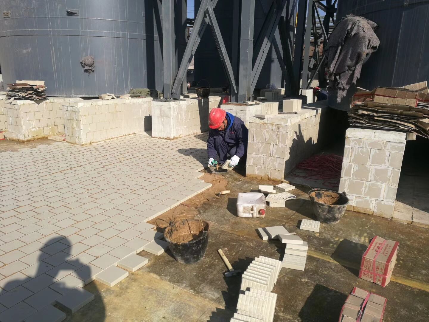 使用說明: 一般環氧樹脂,耐酸膠泥、耐酸水泥鋪貼,鋪貼時可根據上述生產廠家產品使用說明書進行施工; 用草酸清洗混凝土表面,達到酸堿中和; 工業瓷耐酸磚,間縫寬度約8—10mm,間縫深度與磚厚相平為宜,以防泄露; 鋪貼完畢后應用槽酸沖刷表面,以助于更加牢固。